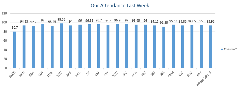 This graph shares each class’ attendance for last week, let’s continue to strive for our school target of 92%.